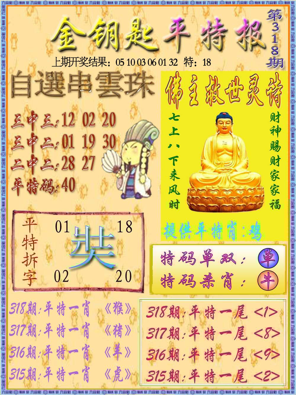 318期:★平特4肖★【狗猴马鸡】开0个准